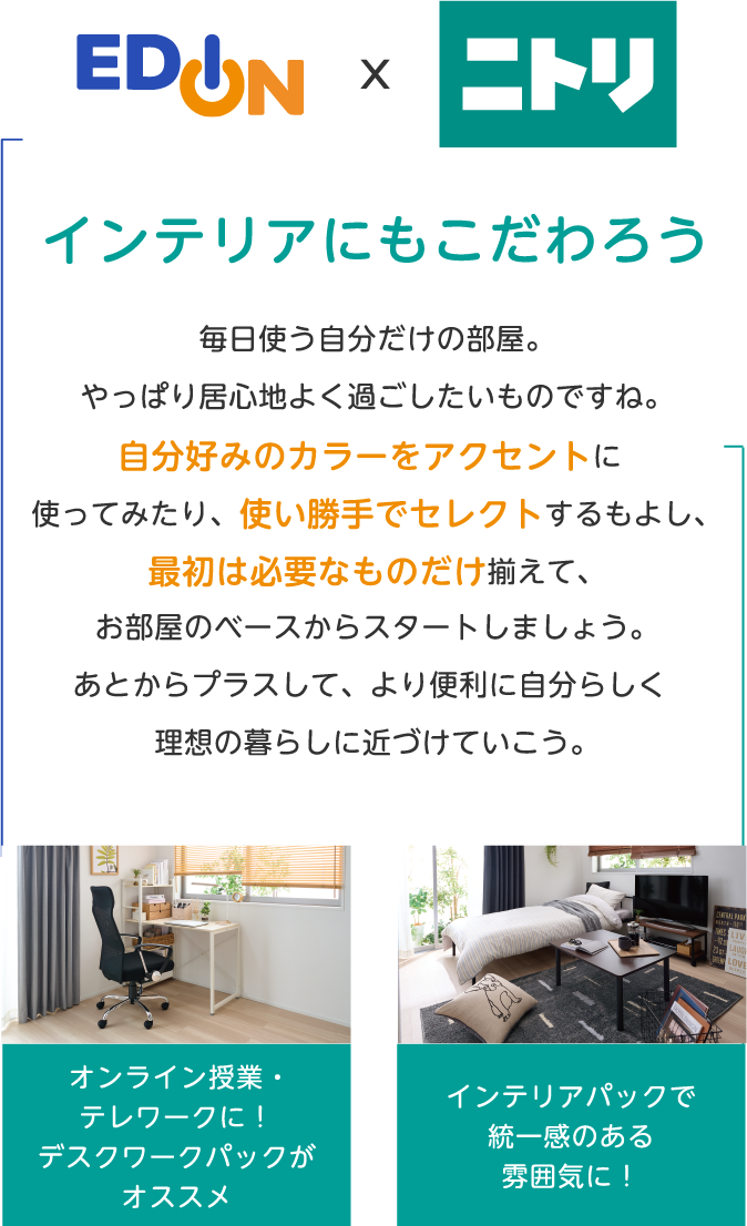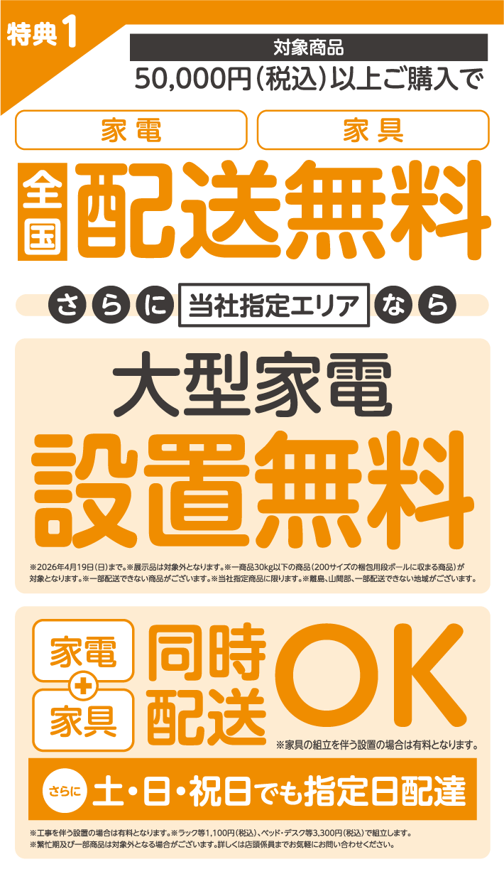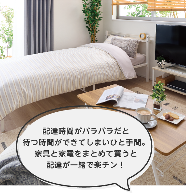 家電を選ぶ時間がなかったり、デザインに統一感が欲しいと考えていたりする場合は、迷わず家電パックで!基本の家電を価格重視やデザイン重視、機能重視などのテーマ別にセレクトできるので、数ある家電の中から選ぶ手間も省けます。
