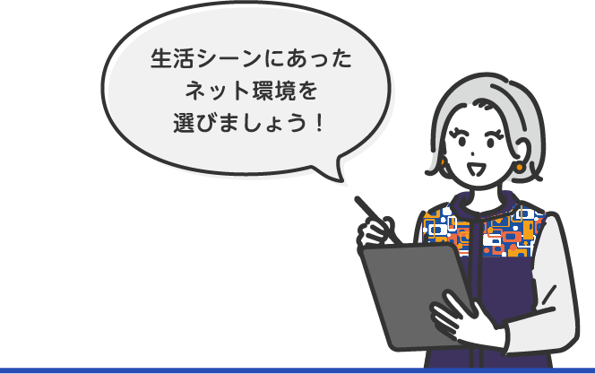 オンライン授業にテレワークや動画視聴、今やネット環境は必需品。賃貸などの契約時に一緒に契 約してしまうのも便利ですが、どうせなら料金や使い勝手も考えてしっかり見直してはいかがでしょうか?速度遅延のない安定した通信なら高速光通信、家でも外でもネット環境を楽しめるモバイルルーター、工事不要で即日開通が可能なホームルーターなど生活シーンに合わせて選ぶのがオススメです。スマホのキャリアに合わせて選ぶと月々のスマホ代がお得になったりすることも。自活するなら節約も重要なので、窓口などで相談してみるといいですよ。